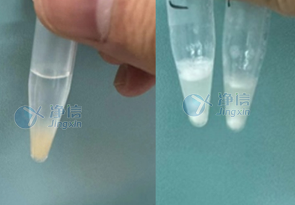從研磨對比圖中,可清晰的看到蜱蟲被充分研磨,后續進行離心,離心后分為三層,上層為水相,下層為有機相,中層是我們要提取的蛋白質。