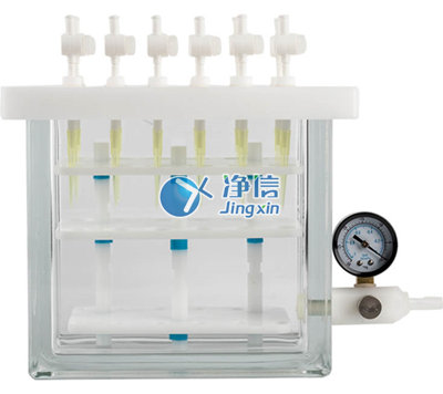 The thickened glass vacuum chamber can withstand negative pressure above -80kPa; the two sides of the glass cylinder adopt sandblasting process, which can effectively isolate the influence of ambient light and facilitate the observation of the extraction process; the gas outlet design at the bottom of the cylinder is equipped with a matching transition bottle, which is convenient for waste liquid Discharge and collection.
