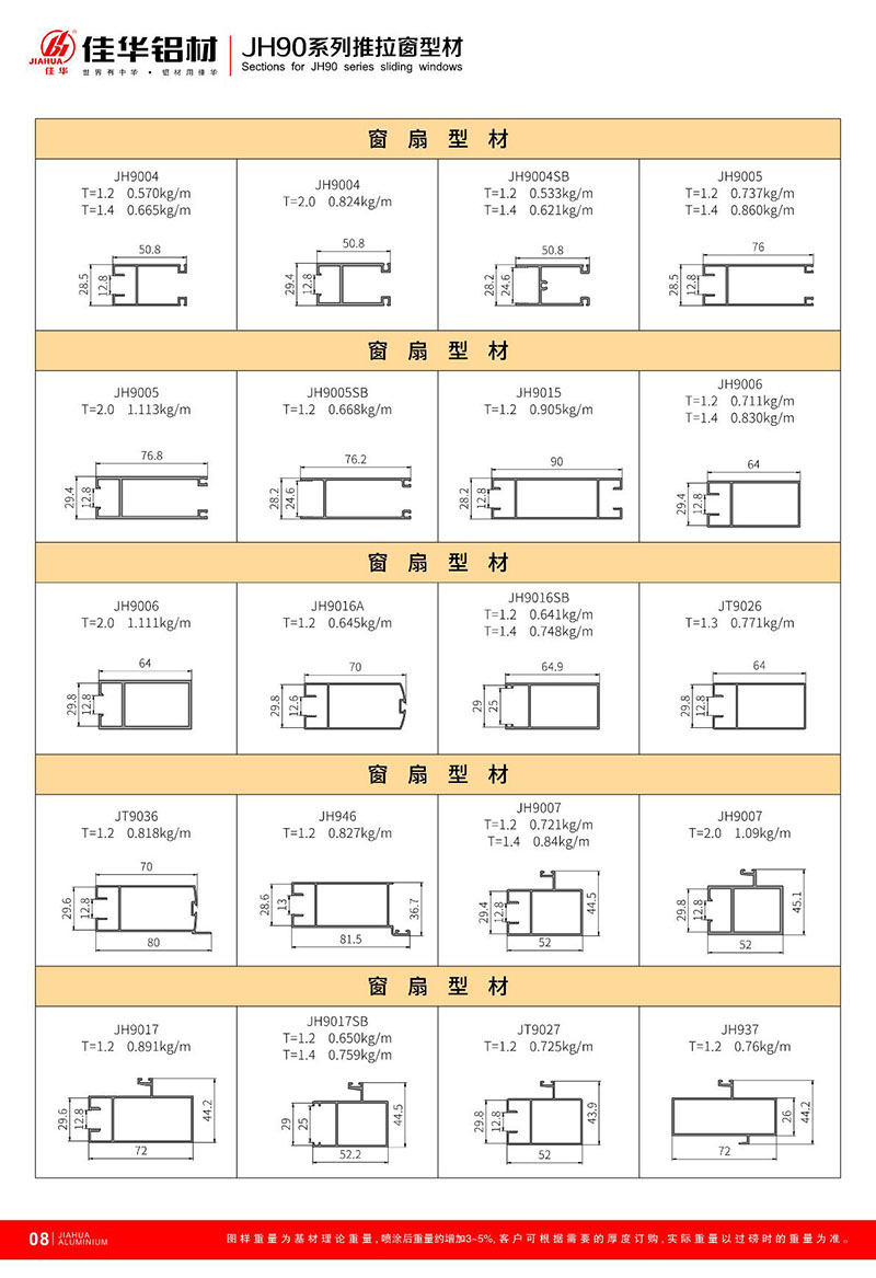 鋁型材規(guī)格型號:JH90 一