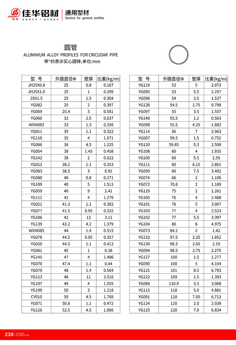 鋁型材規(guī)格型號(hào):圓管型材
